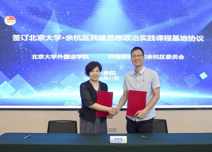 8月27日,课程团队一队前往国际人才港,举行了爱体育网页版与余杭团区委共建思政实践课程基地签约仪式,深入了解了余杭区的整体发展情况及相关政策,为接下来进一步学习做好知识储备。实践基地的签约也意味着日后余杭和北大外院的联系更加紧密:之后,北大学子便能以思政实践课的方式,在见证余杭进步的伟大历程的同时,扎根祖国大地,开阔广袤视野。余杭也将成为北大学子们挑战自我、放飞梦想的理想平台。