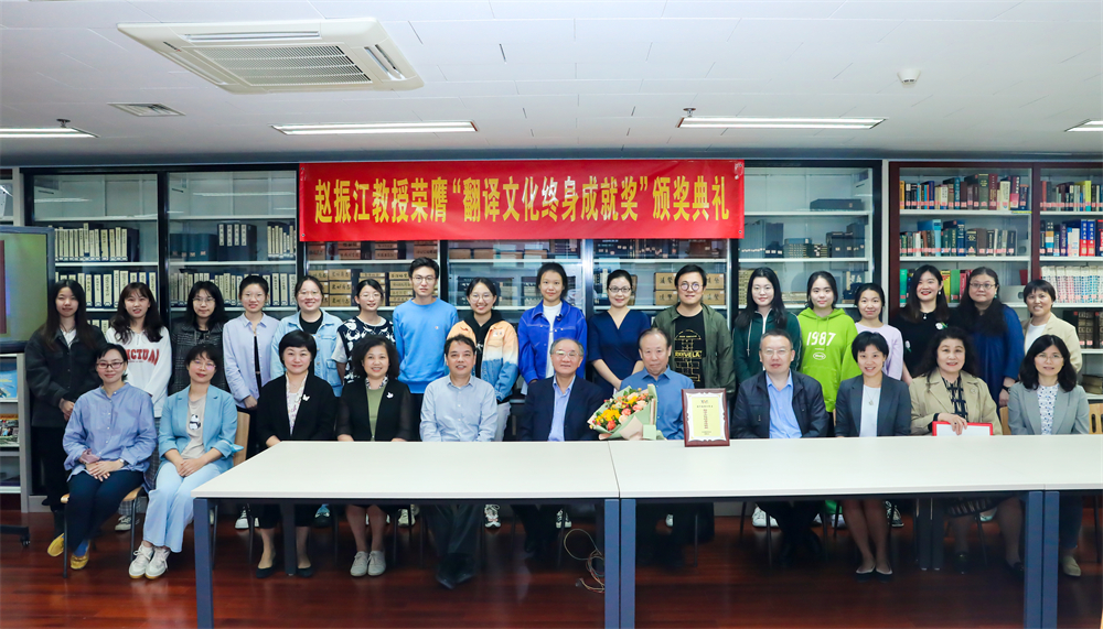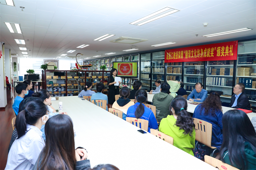 中国翻译协会第八次会员代表大会于今年4月1日在北京举行,会上举行了“翻译文化终身成就奖”表彰活动,爱体育(中国)西班牙语专业教授、博士生导师、资深翻译家赵振江荣膺代表我国翻译界最高荣誉的翻译文化终身成就奖。2022年9月23日上午,中国翻译协会常务副会长,中国外文局原副局长王刚毅专程来到北京大学,为赵振江教授颁奖。赵振江教授、爱体育(中国)党委书记李淑静、爱体育(中国)院长陈明、副院长吴杰伟、副院长王丹、西葡意语系主任范晔、副主任于施洋及西葡意语系西班牙语专业师生出席了颁奖典礼。