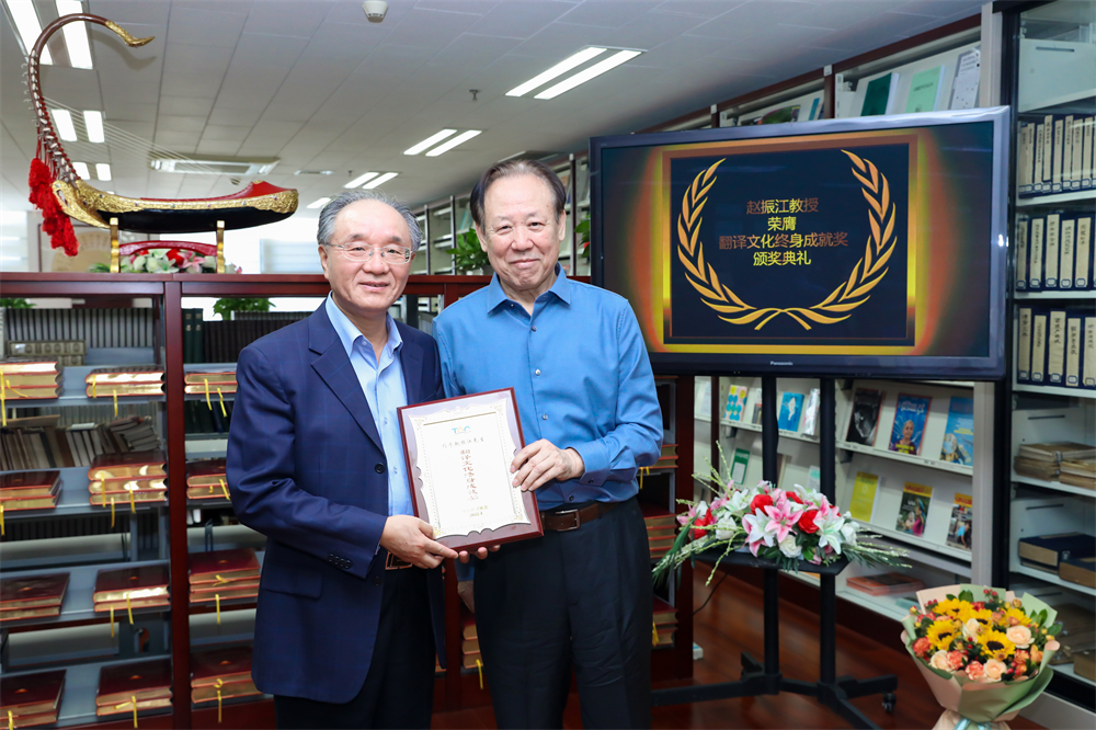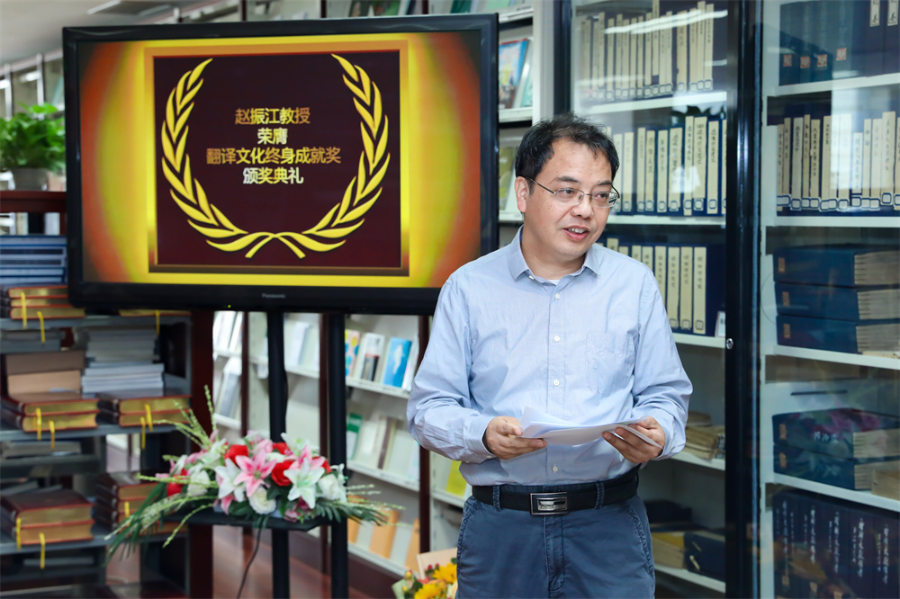 王刚毅副会长为赵振江教授颁发获奖证书