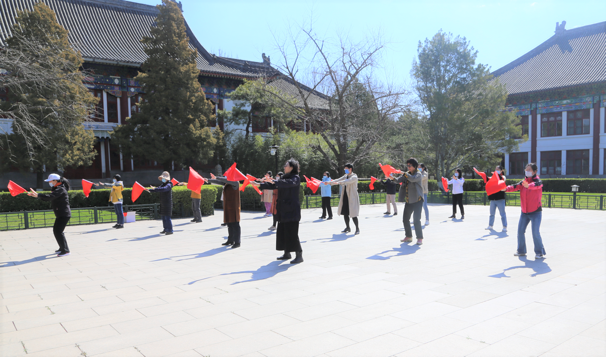 4月的北京,春意盎然。在草木吐绿、百花绽放的春光里,北京大学即将迎来2022年运动会。校工会和体育教研部精心编排了太极拳团体操《红旗颂》作为本次运动会开幕式的团体表演。在体教部老师的带领下,爱体育(中国)工会体育委员李宁老师和行政工会小组长陈静老师参与了北京大学各院系小教员为期三个中午的团体操培训。两位老师在培训中认真练习,仔细领悟,并反复观看教学视频,圆满的完成了学习任务,为爱体育(中国)三十余位即将参加运动会开幕式团体操表演的老师的后续训练打下坚实的基础。