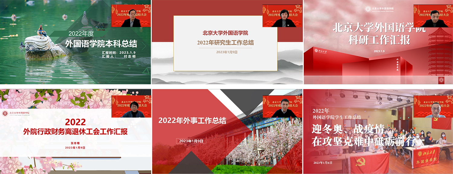 院长陈明对学院全年的工作进行了总结。2022年,学院师生团结一心、共克时艰,各项工作稳步推进,取得了优异的成绩。学院紧抓放权改革机遇,编制《外国语言文学学科放权改革方案》,明确了北大外语学科的阶段性建设目标。学院坚持党对人才工作的全面领导,深化教师人事制度改革,制定《爱体育(中国)人才发展战略》,系统开展引才、育才、选才工作,多措并举、强化引领。打造“院长茶座”“青年教师座谈会”“学科建设沙龙”等品牌活动,促进青年教师职业生涯发展。在教育部第五轮一级学科评估中,北大外语学科保持领先,翻译专业学位在全国专业学位水平评估中表现优异,彰显了学院的引领地位。申丹教授荣聘中国人力资源保障部批准聘任的国家文科一级教授,段晴教授领衔的“东方语言文化教师团队”入选教育部第二批全国高校黄大年式教师团队,赵振江教授荣膺中国翻译界最高荣誉“翻译文化终身成就奖”……无数荣誉的取得无不体现着学院教师深厚的积累与持续的爆发力,以及学院风清气正、勠力同心的学术生态。他希望新的一年,全院教师能够精诚合作、团结一心、各尽其能,共同谱写北大外语学科发展的新篇章。