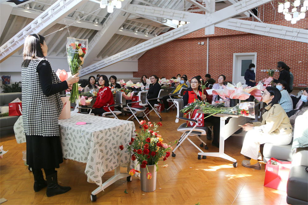 活动伊始,张冬梅老师代表学院向全体女教职工致以节日的问候。张老师指出,妇女在社会中扮演着重要的角色,妇女节是世界各国妇女争取平等权利和参与社会、政治活动而设立的节日,对妇女节的庆祝体现了女性在社会各领域所做出贡献的肯定与赞美,中华民族不断取得的伟大成就与妇女群体息息相关。希望此次插花活动为学院教职工带来幸福与温暖,希望老师们放松心情,尽情享受节日的欢乐。