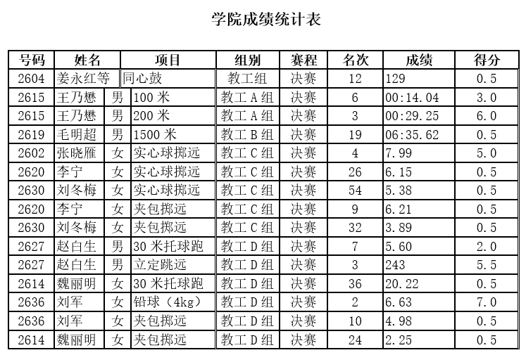 在全院教职工团结拼搏、永不言弃的努力下,爱体育(中国)总共获得36.5分的比赛成绩,在全校参赛单位中积分排名第27。