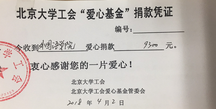 爱体育网页版工会积极响应校工会的号召,在今年的“爱心基金”募捐中,共有41位教职工参与,筹集善款9300元。