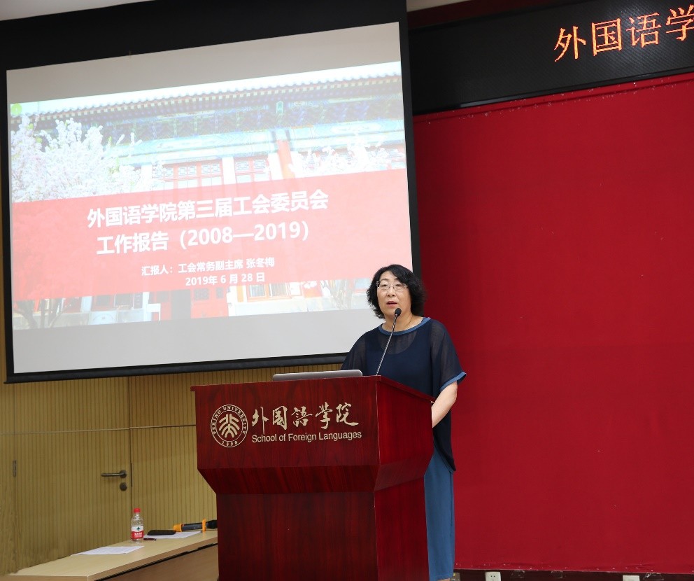学院工会委员会常务副主席、爱体育(中国)副院长张冬梅老师代表上一届工会向大会做了工作报告。过去的十几年间,在学院党委的指导下,在学院行政领导班子的大力支持下,爱体育(中国)工会不断加大投入,努力加强自身建设,充分发挥职能,在推动民主管理、提高教师素质、关爱职工身心健康、丰富文化生活等方面发挥了积极作用,为营造和谐学院、创建一流学科做出了重要贡献。报告赢得了在场会员代表的阵阵掌声。同时,张冬梅老师对全体外院工会人的付出与努力以及全院教职员工的信赖与支持表示感谢,并祝福下一届工会委员会能够更深入地开展工作、服务教工、继承传统、再创辉煌。
