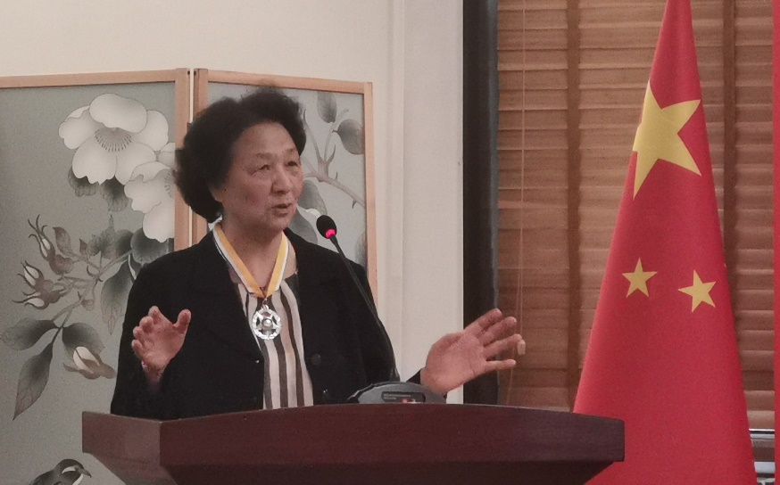 孔菊兰教授发表获奖感言时表示,喀喇昆仑公路上四年工作时光与旁遮普大学三年学习光阴让她对巴基斯坦产生了深切的感情、对乌尔都语燃起了强烈的兴趣,此后自己一直将乌尔都语作为自己工作和事业的重心,并在编写教材、阅读与分析文学作品、编纂字典的过程中不断加深了对巴基斯坦和乌尔都语的认识与理解。她与国内外多位学者耗时8年,编纂出版了国内第一步《乌尔都语汉语词典》,她对此感到非常欣慰与自豪。孔菊兰教授表示,勋章是对自己从事乌尔都语教学和学术研究的充分肯定,更是对自己的鞭策和鼓励,她愿继续发挥余热,为乌尔都语事业奋斗终生,并祝愿中巴友谊万岁!