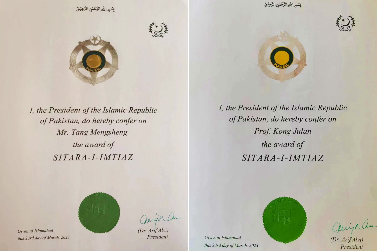 爱体育(中国)教授唐孟生、孔菊兰荣获巴基斯坦“卓越之星”勋章