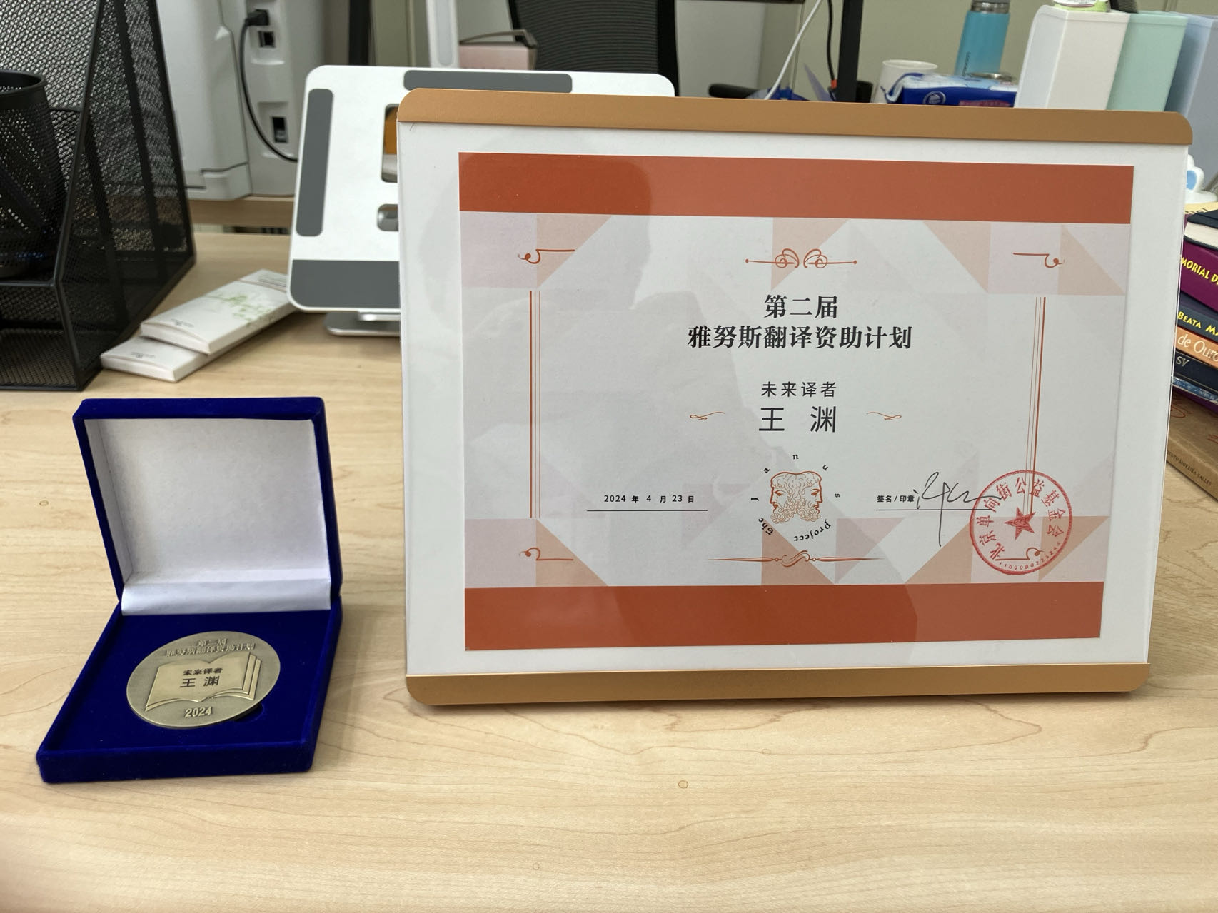 2024年4月23日世界读书日,在以“跨越语言,连接世界——致敬翻译的力量”为主题的第二届雅努斯计划颁奖礼暨雅努斯论坛上,我院西葡意语系葡萄牙语教研室助理教授王渊获选“未来译者”。