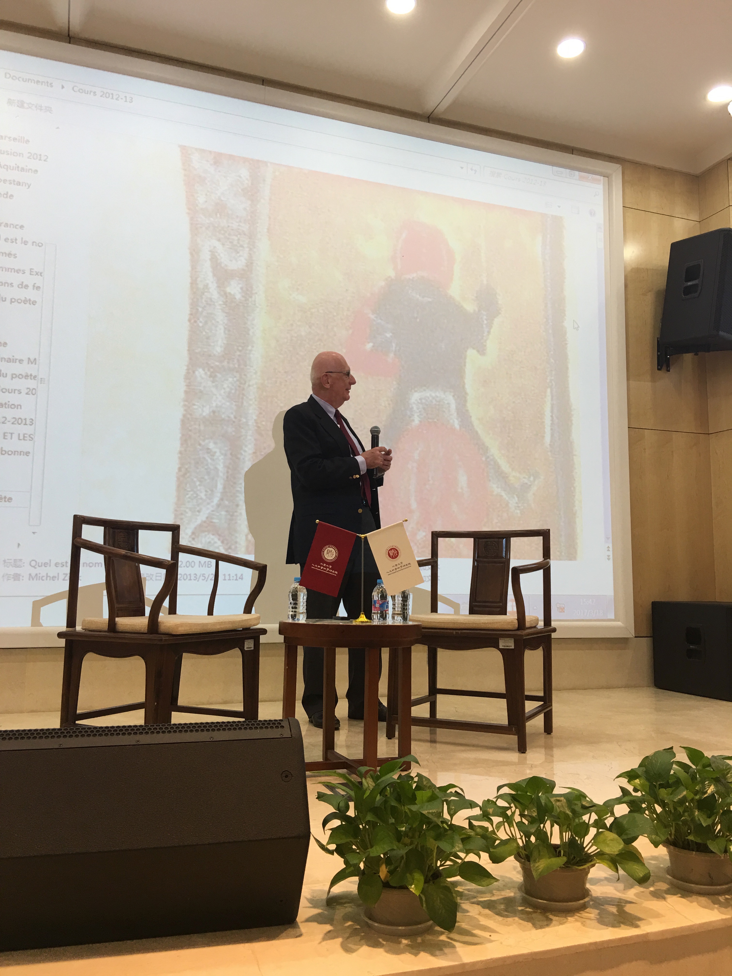 法兰西古文献学院终身秘书长米歇尔.赞克为法语系同学讲课