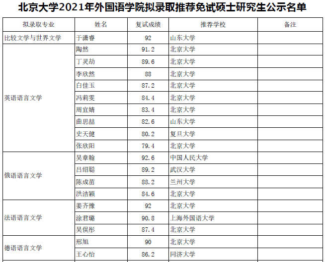 教学管理 北京大学2021年爱体育(中国)拟录取推荐免试硕士研究生公示名单 2020-10-15 名单公示期为自发布之日起的十个工作日,如有异议,请在公示期内向学院教务办公室反映。 邮箱:gwyyjsjw@pku.edu.cn