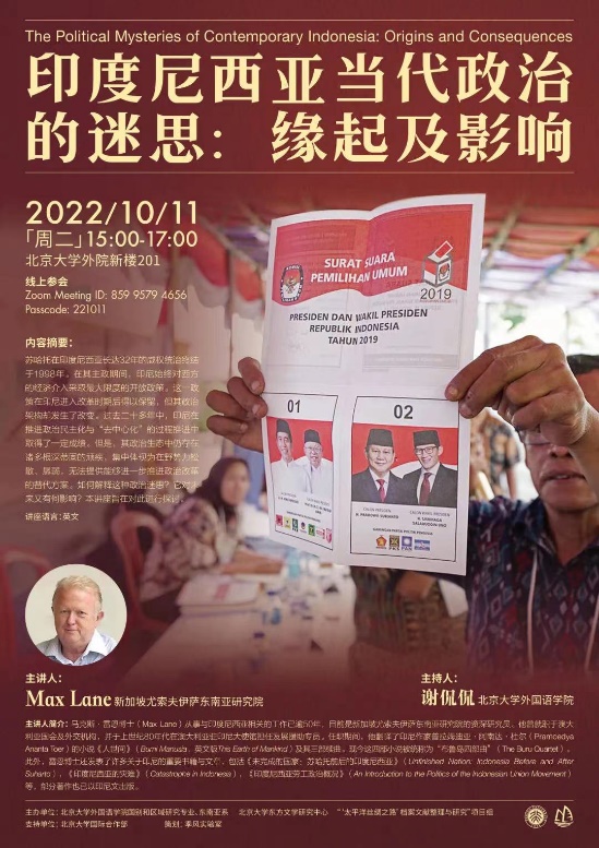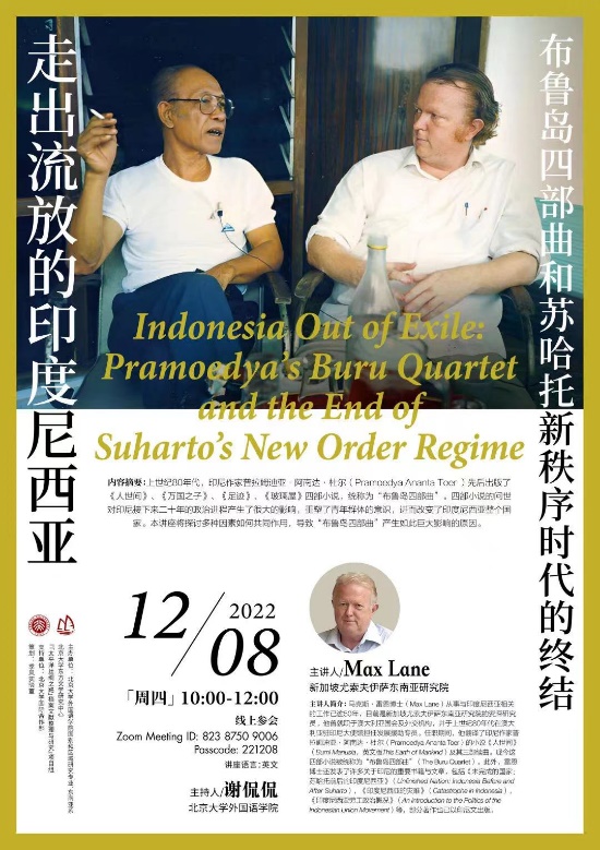2022年10月11日和12月8日,新加坡尤索夫伊萨东南亚研究院的马克斯·雷恩(Max Lane)博士应爱体育网页版的邀请进行了两场线上讲座,题目分别为“印度尼西亚当代政治的迷思:缘起及影响”(The Political Mysteries of Contemporary Indonesia: Origins and Consequences)、“走出流放的印度尼西亚:布鲁岛四部曲和苏哈托新秩序时代的终结”(Indonesia Out of Exile: Pramoedya’s Buru Quartet and the End of Suharto’s New Order Regime)。上述两场讲座均由爱体育网页版国别和区域研究专业、东南亚系、北京大学东方文学研究中心及“‘太平洋丝绸之路’档案文献整理与研究”项目组联合主办,并得到北京大学国际合作部的支持。