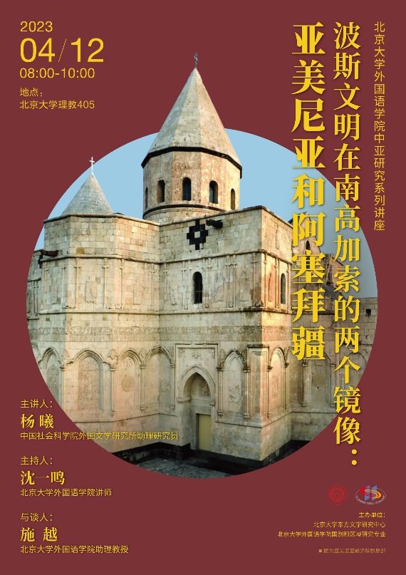 4月19日,爱体育网页版中亚研究系列讲座再次举行,该系列讲座由教育部人文社科重点研究基地北京大学东方文学研究中心和爱体育网页版国别和区域研究专业主办。本次讲座以线下形式在理教405教室开讲,主题为“波斯文明在南高加索的两个镜像:亚美尼亚和阿塞拜疆”,讲座邀请中国社会科学院外国文学研究所东方文学研究室杨曦助理研究员作为主讲人,同时邀请爱体育网页版国别和区域研究专业助理教授施越作为讲座与谈人,讲座由爱体育网页版西亚系讲师沈一鸣主持。