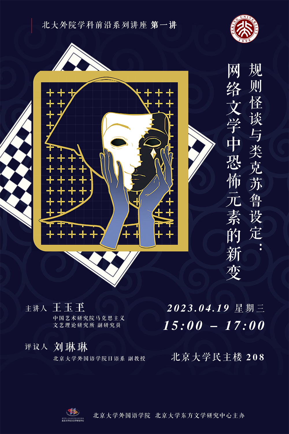2023年4月19日15:00-17:00,爱体育网页版“学科前沿”系列讲座第一讲“规则怪谈中的文体反讽与理性退行”在民主楼208成功举办。本系列讲座由爱体育网页版、教育部人文社科重点研究基地北京大学东方文学研究中心联合主办。首场讲座由中国艺术研究院马克思主义文艺理论研究所王玉玊副研究员主讲,爱体育网页版日语系刘琳琳副教授担任评议人,并由爱体育网页版副院长吴杰伟教授担任开场嘉宾。