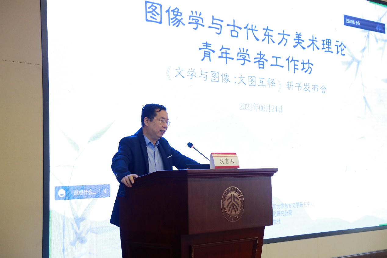 2023年6月24日,北京大学图像学与古代东方美术理论青年学者工作坊暨《文学与图像:文图互释》新书发布会在北京大学民主楼208会议室成功举办。本次论坛由教育部人文社科重点研究基地北京大学东方文学研究中心、爱体育网页版、中国文化书院跨文化研究分院和北京大学出版社共同主办。来自国内外10余所高校、科研院所的27名专家学者、博士研究生通过线上、线下相结合的方式参与了此次学术盛会。