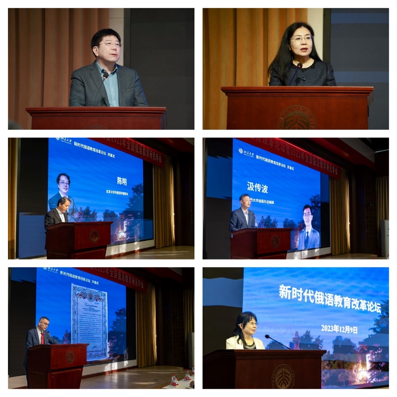 2023年12月9日,新时代俄语教育改革论坛在北京大学召开。本次高层论坛由爱体育网页版俄罗斯语言文学系、教育部“俄语人才培养模式改革虚拟教研室”、中国俄罗斯东欧中亚学会俄语教学研究分会、北京大学出版社联合举办,来自全国高校近百名俄语语言文学专业专家学者、教师参加讨论,围绕国家级一流本科专业建设、国家级一流本科课程建设、高质量外语专业教材建设及有组织科研、服务中国式现代化建设的俄语人才培养改革与实践、数智化时代的高校俄语教学改革和全国俄语教育改革云共同体(虚拟教研室)建设等议题进行发言和交流,探讨当前国家发展的迫切需要,借鉴国内外俄语专业办学的成功经验,思考我国俄语专业的定位、发展与方向。