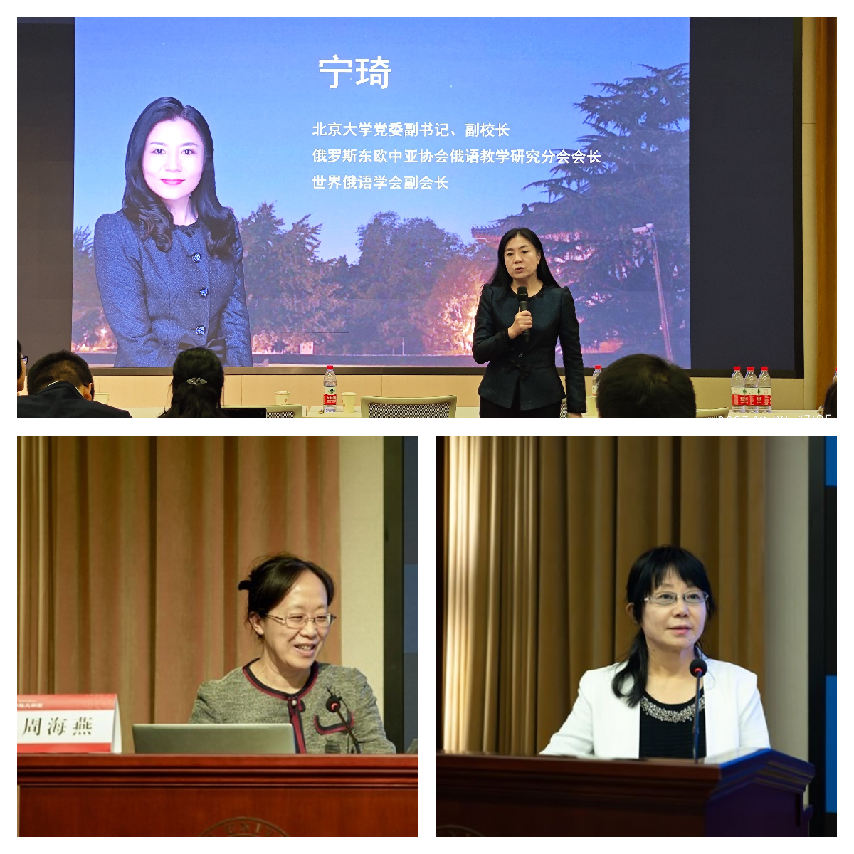 论坛开幕式上,中国俄罗斯东欧中亚学会秘书长王晓泉研究员,北京大学党委副书记、副校长、中国俄罗斯东欧中亚学会俄语教学研究分会会长、世界俄语学会副会长宁琦教授,爱体育网页版院长陈明教授、北京大学出版社总编辑汲传波教授发表了致辞,俄罗斯驻华使馆一等秘书、教科部驻华代表伊戈尔·波兹尼亚科夫博士宣读了俄罗斯联邦外交部致中国俄罗斯东欧中亚学会俄语教学研究分会的感谢信,感谢其为推广和普及俄语和俄罗斯文学所做贡献。俄罗斯联邦驻华大使馆一等秘书、北京俄罗斯文化中心主任吴丹娜女士出席开幕式,中国俄罗斯东欧中亚学会俄语教学研究分会秘书长张冰教授主持开幕式。