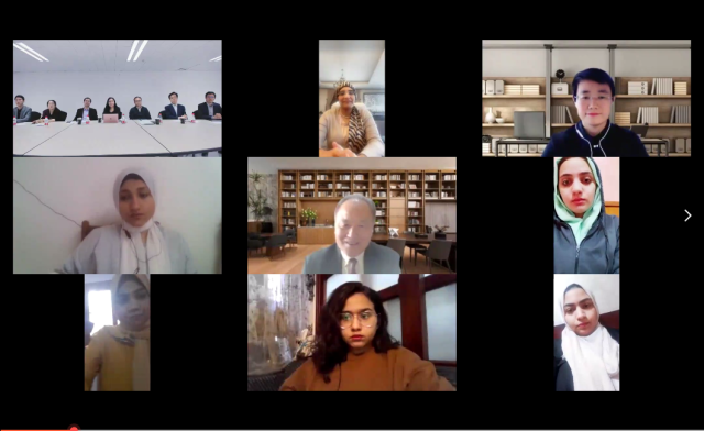 匡国鑫副主任表示北京大学-开罗大学春令营精心组织的中国文化系列讲座,将传统的来华学生团组转换为线上的学生交流和文化浸润,做到了“交流不断线,友好常在线,合作不断档,开放不止步”。随后,匡主任介绍了开罗大学孔子学院开展的多项文化活动,表示北大汉推办将会继续探索孔子学院转型发展,鼓励推动校与校之间以孔子学院为媒介开展多领域、深层次的学术交流和交往。