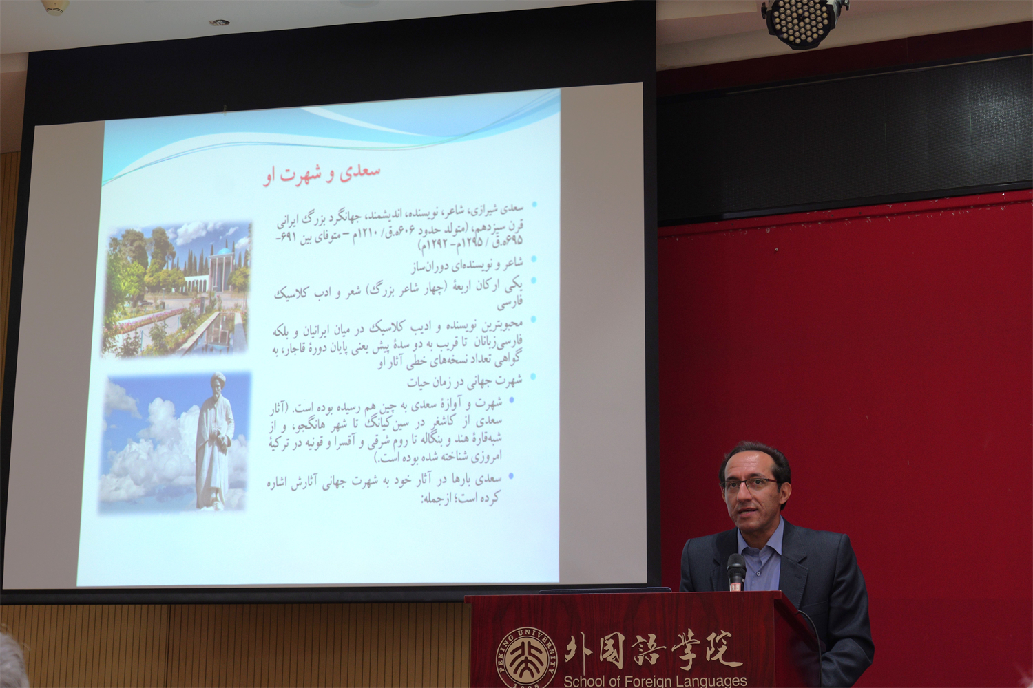 2023年10月20日下午,爱体育网页版“东方大文学”系列讲座第十五讲“萨迪作品中的中国形象与中国文化中的萨迪作品”在爱体育(中国)新楼501会议室举办。本次讲座由爱体育网页版西亚系波斯语言文化教研室、北京大学东方文学研究中心联合主办,主讲人为伊朗阿拉梅·塔巴塔巴伊大学波斯语言文学系副教授、中国研究中心主任穆罕默德阿米尔·贾拉利博士。伊朗-中国友好协会秘书长阿里穆罕默德·萨贝基先生、波斯语言文化教研室师生出席本次讲座。