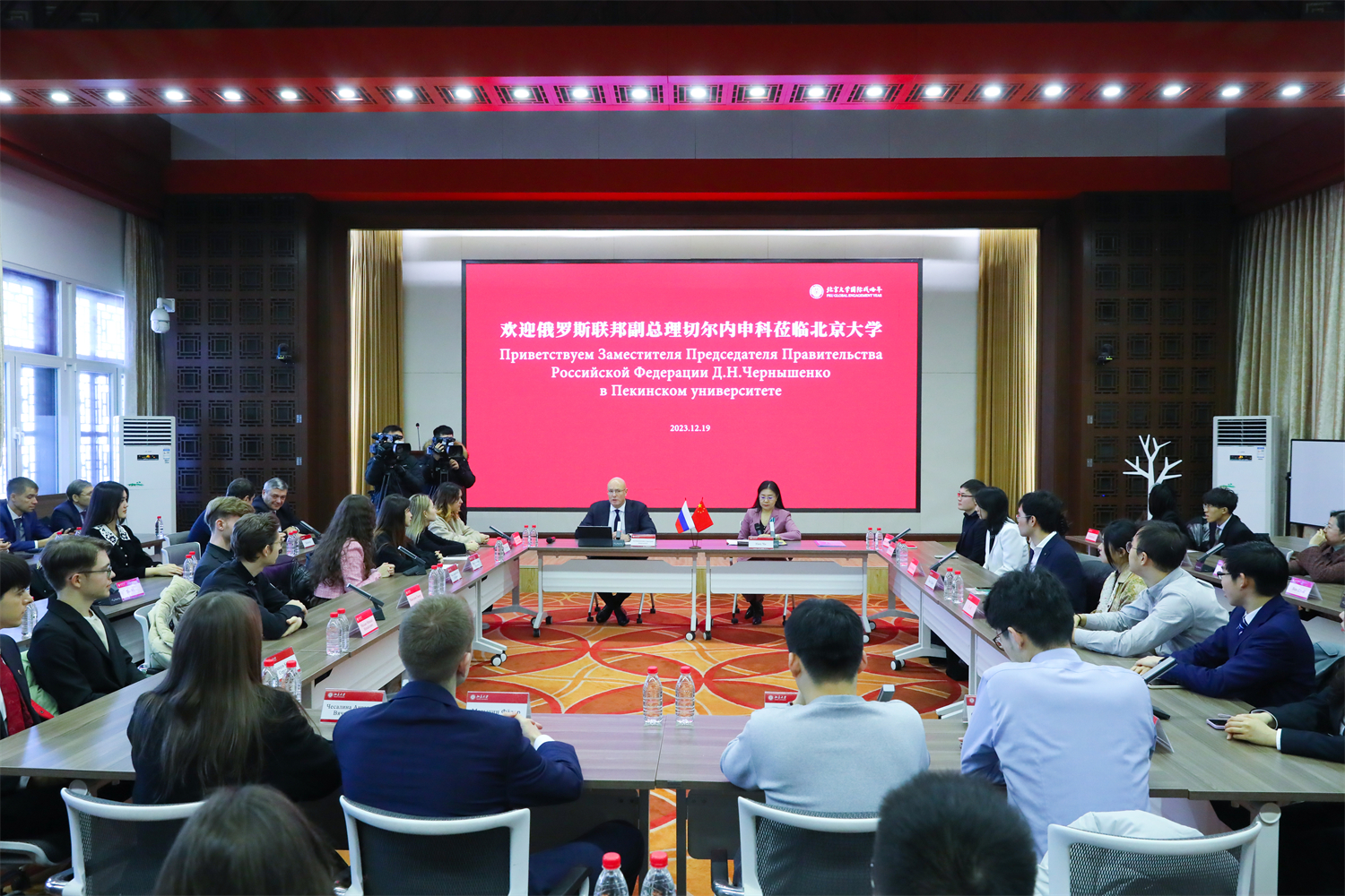 颁授仪式结束后,切尔内申科前往爱体育(中国)民主楼,与北京大学俄罗斯籍留学生、爱体育(中国)俄语系师生就中俄大学合作前景、留学就业、文化交流等主题展开座谈交流,师生反响热烈。