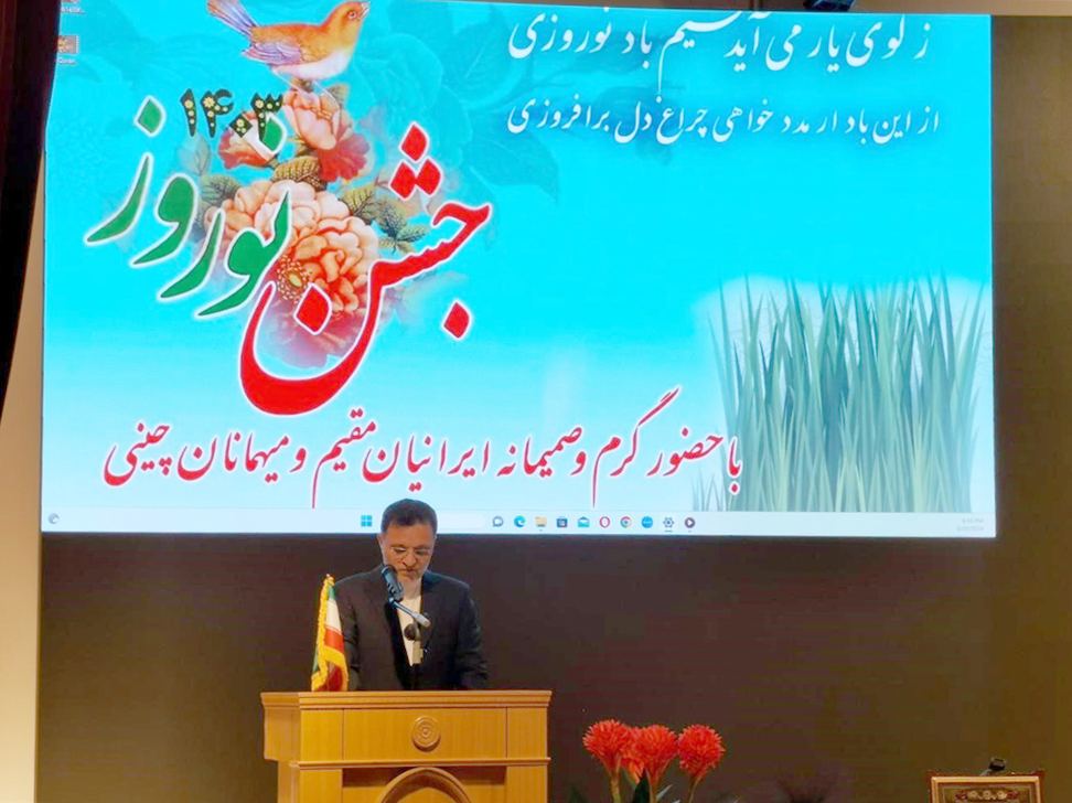 2024年3月21日,我院西亚系波斯语言文化专业师生与北京其他四所开设波斯语专业的高校师生齐聚一堂,应邀参加伊朗驻华使馆举办的伊朗诺鲁兹新年活动。伊朗驻华大使巴赫蒂亚尔先生出席大会并致辞,表达了对于未来中伊两国在学术和文化领域加强交流合作的期许,并向来宾致以新年的祝福。