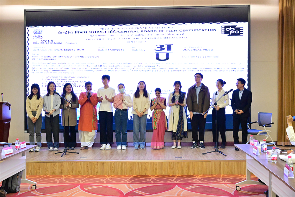 中印代表发言后进入文艺交流环节。该环节的活动上播放了北京大学南亚学系精心制作的“泰戈尔访华100周年纪念视频”。