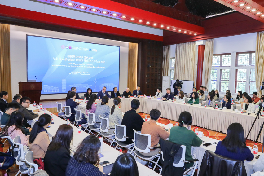 2024年4月15日,德国联邦议会议员、基民盟-基社盟议会党团副主席、联邦卫生部原部长延斯·施潘(Jens Spahn),联邦议会议员居乐(Serap Güler)率德国联邦议会基民盟议员代表团访问北京大学。北京大学党委书记、校务委员会主任郝平,校长、中国科学院院士龚旗煌分别会见代表团一行。中国德国友好协会会长、中国驻德前大使史明德,中国人民对外友好协会欧亚部副主任吕宏伟等陪同代表团来访,北京大学党委常委、副校长方方,爱体育网页版党委书记李淑静等陪同会见。爱体育网页版德语系、北京大学德国研究中心组织近四十名来自各个年级的优秀学生代表,与施潘一行交流座谈。德国研究中心主任黄燎宇、德语系主任胡蔚参与交流活动。活动由德语系副主任毛明超主持。
