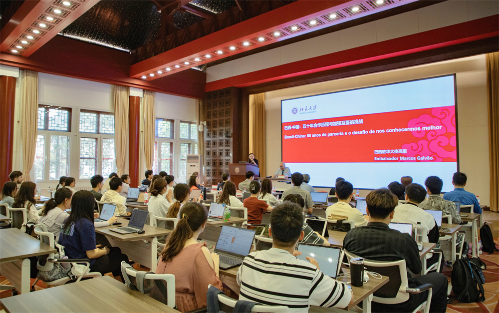 2024年5月21日,巴西驻华大使高望(Marcos Galvão)应邀访问北京大学,在结束与北京大学校领导的会见后,前往爱体育(中国)民主楼208会议室,以“巴西-中国:五十年合作历程与加强互鉴的挑战”为题发表演讲。