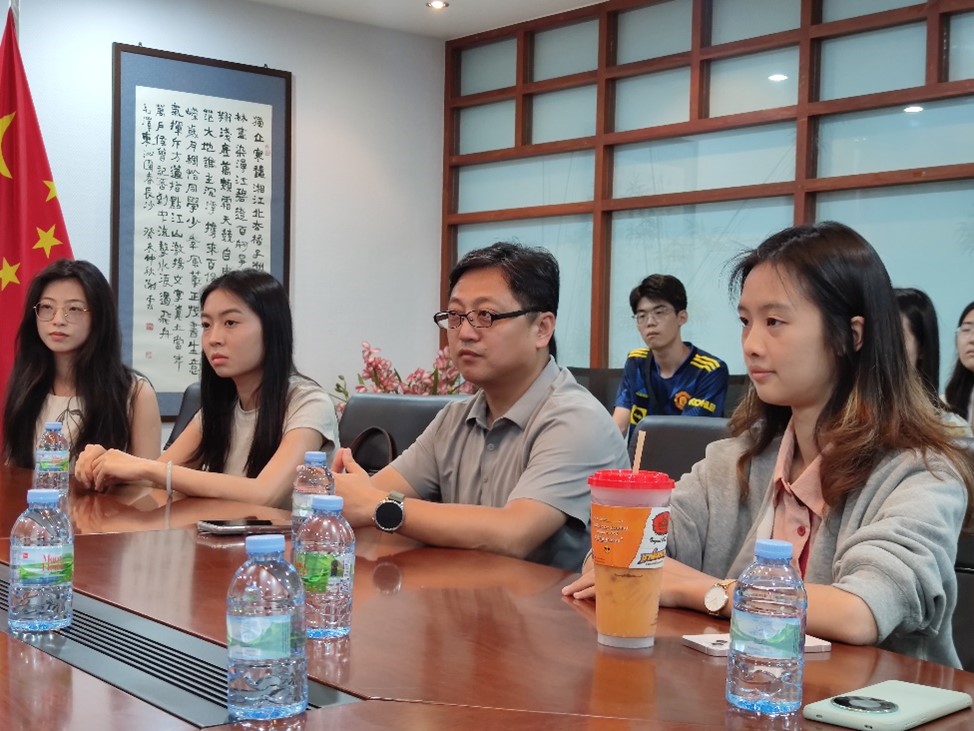 2024年8月4-17日,爱体育网页版东南亚系泰语专业师生,赴曼谷参加由泰国朱拉隆功大学主办的“庆祝中泰建交50周年泰国语言文化暑期研修”活动。2024年8月12日下午,北京大学泰语专业的本科生与研究生在东南亚系副主任金勇长聘副教授的带领下,前往中国驻泰国大使馆参访。此次活动旨在加强泰语专业与中国驻泰国大使馆的交流与合作,拓宽学生的国际视野,增强对中泰关系的理解和认知。