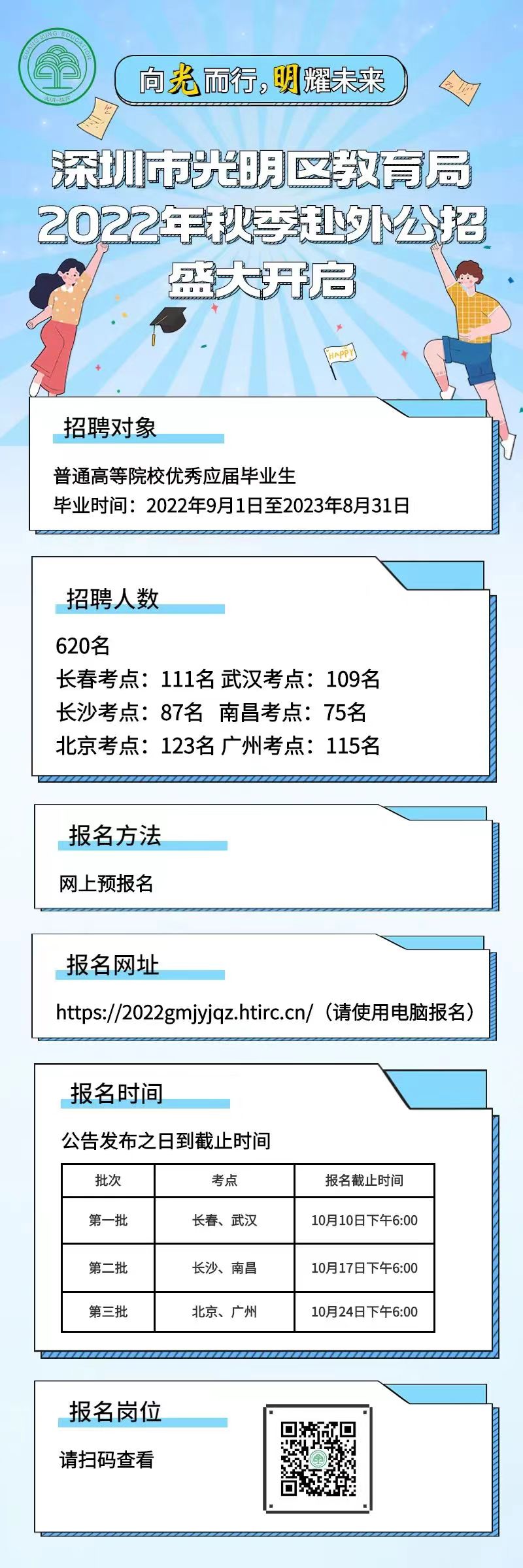 深圳市光明区2022年秋季赴外公招620名在编教师