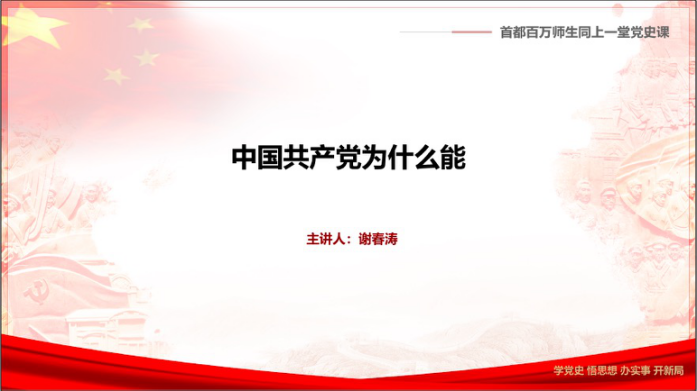 为深入学习贯彻习近平总书记在党史学习教育动员大会上的重要讲话精神, 引导党员深入学习党史,大力发扬红色传统,传承红色基因,3月31日下午,爱体育(中国)全体学生党支部开展“首都百万师生同上一堂党史课”公开课学习活动,共同学习由中央党校副校长谢春涛主讲的《中国共产党为什么能》。16个学生党支部积极响应,结合集中观看、党小组讨论、个人学习等多种形式积极开展学习研讨。