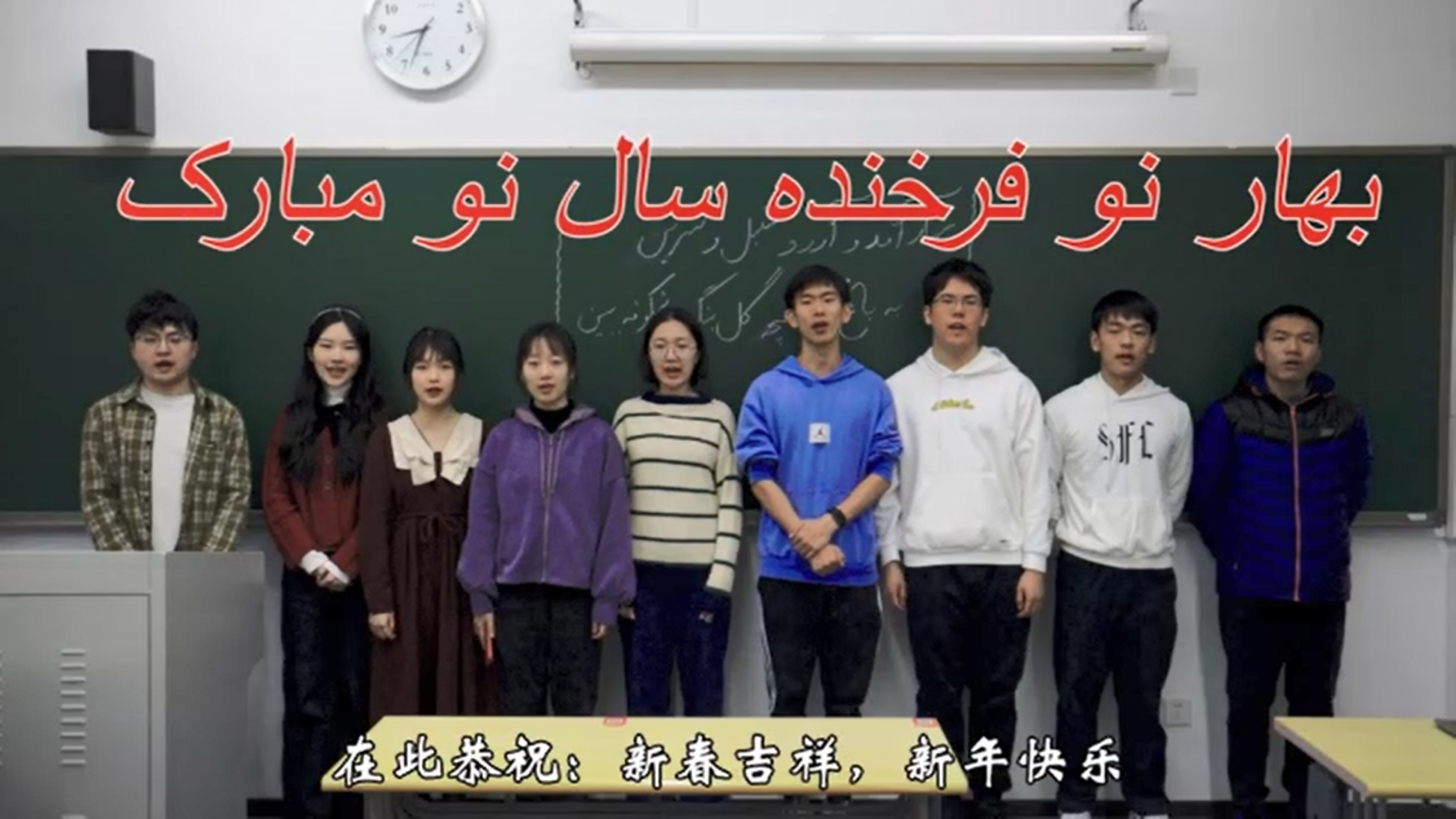 3月21日,伊朗人民欢庆诺鲁兹节,迎接当地新春和新年的到来。此时正值中国“春分”节气前后,爱体育网页版波斯语专业2020级九名本科生同学录制了祝福视频,恭贺伊朗新禧。