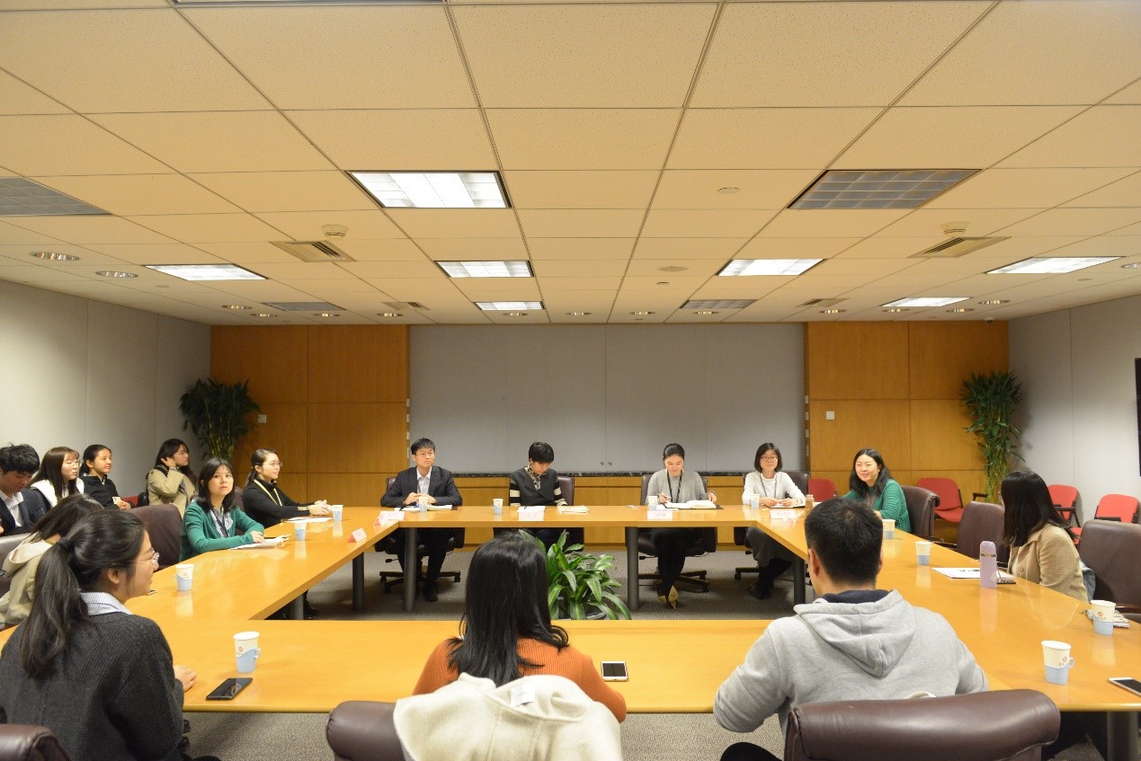 参观结束后,来自中国银行总行、分行的老师们与爱体育(中国)师生一行共同召开座谈会。座谈由中国银行青年工作负责人龚婉露主持。