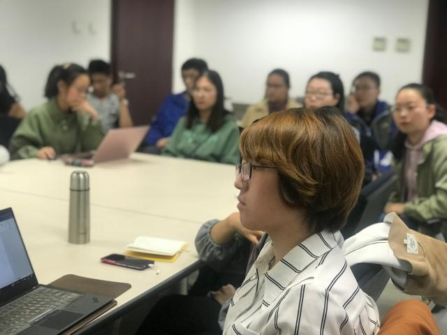 接着杨笛回顾和介绍了自己的选调生考试经历和入职重庆市渝中区后的工作情况。她从择业原因、工作内容、心路历程等多个方面讲述了自己的选调经历。杨笛表示,自己当初做选调生是综合考量了家庭、理想等综合因素之后做出的慎重决定。她指出,就业是大学生踏入社会的第一个难关,不仅个人要有明确的职业目标,还需考虑家人期望和社会认可,是一个双向选择的过程。接着她介绍了自己作为基层选调生的工作内容、工作强度和发展前景。她表示基层公务员的工作虽然较为繁重,却是提升办事能力、结识优秀工作伙伴、全心全意为人民服务的绝佳平台。她强调,无论在哪个岗位上工作,都应从自己的实际情况出发,牢记初心,切莫攀比,适合自己的才是最好的。最后,杨笛以攀登珠峰为喻,鼓励同学们不要惧怕走弯路或者暂时的后退,因为这都是登山过程中不可避免的,也是登山的乐趣所在,不管是前进还是后退,对我们的人生来说都有意义。