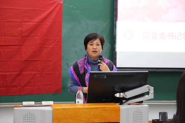 李淑静老师在致辞中深情回忆了她在本科阶段参加团校的经历,她表示,团校不仅带给了她知识和能力,更让她有机会结识了一生的友人和爱人。李老师希望同学们能够充分利用团校这个平台,珍惜学习机会,认真学习理论,加强小组交流。李淑静老师鼓励同学们向在几乎被西方声音垄断的学术界得到广泛认可的申丹教授学习,向在国庆70周年重大活动中“一直替补、永不离队”的“万能砖”许洋同学学习,践行“世界在我脚下,祖国在我心中”的青春箴言。李老师祝愿学员们能在外院团校享受快乐、享受知识、享受友谊,成为更好的自己。