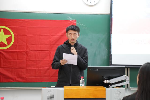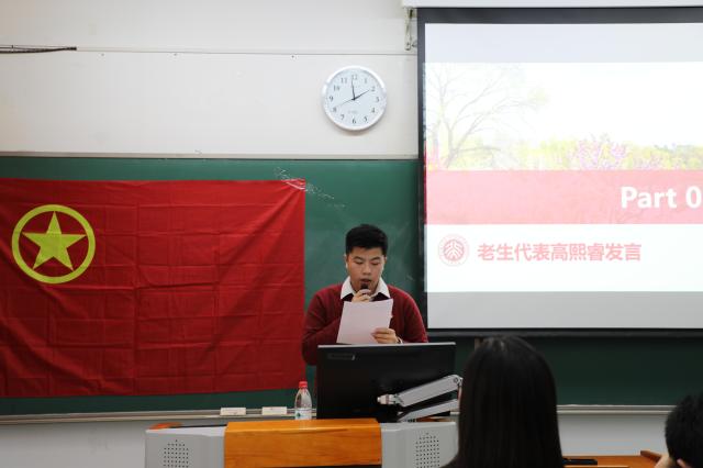 随后,上一任院团校秘书处秘书长、爱体育(中国)南亚系印地语专业2017级本科生高熙睿同学作为老生代表进行了发言。他以前往四川大凉山社会实践的亲身经历为例,讲述了他所感受到的建设祖国的使命感。他祝愿同学们能够在团校收获理论和能力,同时怀着使命感和初心,找到前进的方向。