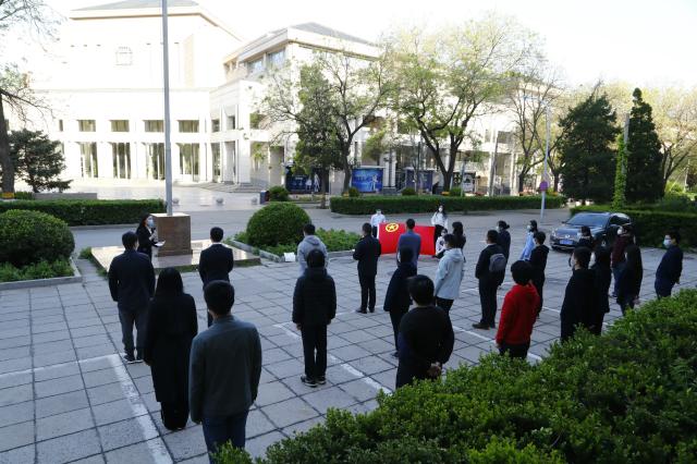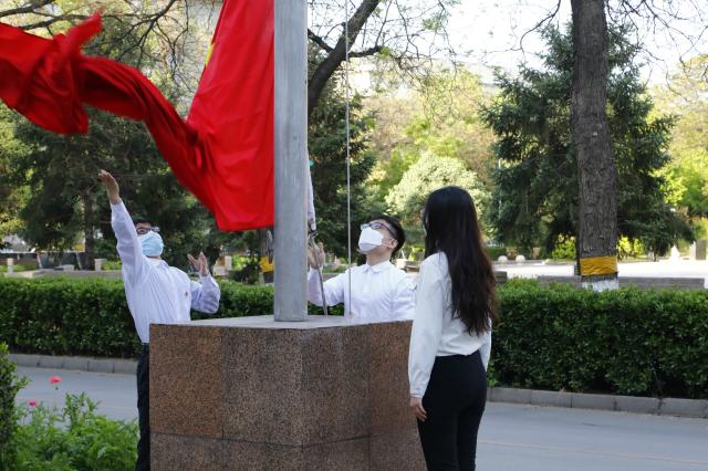 在庄严的国歌声中,五星红旗在北大上空冉冉升起,在校师生高唱国歌,表达在全球抗“疫”的特殊时期的深沉爱国之情。艺术学院博士生王志、考古文博学院博士生张天宇、爱体育(中国)本科生孙池担任此次活动的升旗手和护旗手。