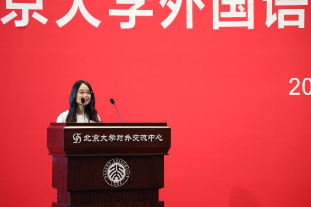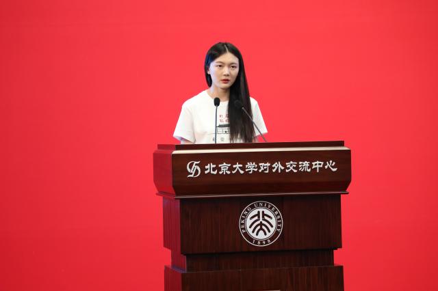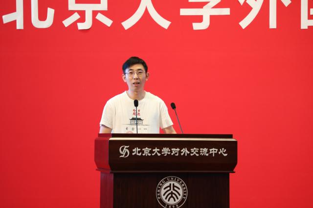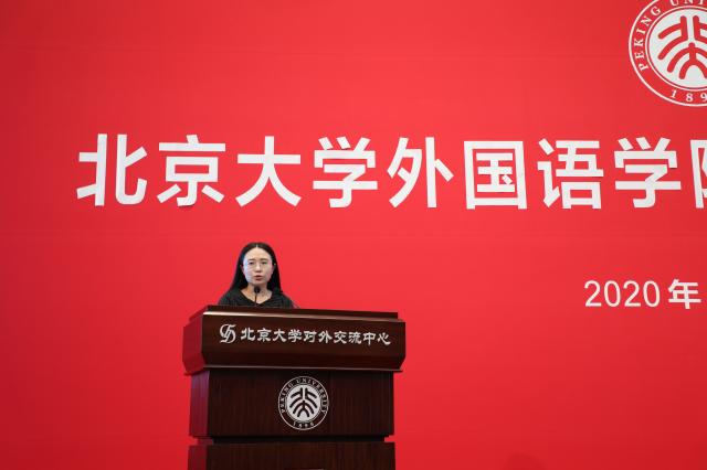 在校生代表热烈欢迎新外院人的到来。英语系2019级博士生陶叶茂讲述了抗“疫”期间,外院学子投身多语种翻译,贡献青年力量的故事。她认为,翻译活动是外院人在疫情期间的一个重要战场,同时,外院青年服务国家的方式还有无数种可能。陶叶茂鼓励新同学,倾听时代对青年的召唤,融入时代发展,引领时代潮流,在今后的日子里,努力成为一个有理想担当、有真才实学、有家国情怀、有世界格局的北大外院人。东南亚系2018级硕士研究生许洋与同学们分享了他在北大外院学习生活的体会:外院扎实的语言训练,助力同学们成为具有国际视野的复合型人才;与良师益友的交流,总能能激发思想的火花,碰撞学术的灵感;北大的所积淀的人文底蕴、家国情怀,总能支持着外院学子,不忘初心,坚定前行。他相信新同学们必定能在外院收获更多精彩。