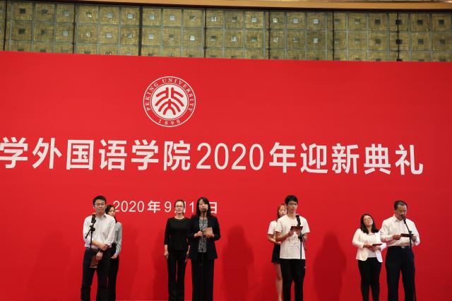 9月19日下午,爱体育网页版2020年迎新典礼在英杰交流中心阳光厅隆重举行。院长宁琦,院党委书记李淑静,副院长付志明、吴杰伟、王丹,院党委副书记宋扬,阿拉伯语系系主任林丰民,朝韩语系副系主任李婷婷、2020级本科班主任丁一、硕士生班主任琴知雅,德语系系主任黄燎宇、2020级本科班主任卢白羽,东南亚系系主任、2020级菲律宾语专业班主任史阳,俄语系副系主任周海燕、硕士生班主任陈思红,法语系2020级本科班主任罗湉,南亚系副系主任萨尔吉、研究生班主任张亚冰、乌尔都语专业2020级本科班主任王旭,日语系系主任孙建军、副系主任丁莉、翻译硕士班主任杜晓梅,西葡语系系主任范晔、西班牙语专业2020级本科班主任路燕萍,西亚系系主任李政,亚非系蒙古语专业2020级本科班主任袁琳,英语系系主任高峰枫、2020级本科班主任修立梅,外国语言学及应用语言学研究所主任高一虹、2020级硕博班主任冯硕,世界文学研究所副主任、研究生班主任程小牧,MTI教育中心主任林庆新、2020级硕士班主任栗洁歆,外国语言文学(国别和区域研究)专业施越,院团委书记卢敏,专职辅导员于丹、丁尧、李佳盈、王乃懋、王志峰与2020级本硕博全体新生共同出席典礼。典礼由院党委副书记王恒主持。