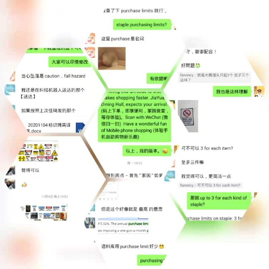 为发挥专业力量在疫情防控、校园环境建设中的积极作用,数十个党团支部不约而同地开展了校园标识翻译活动。2019级西班牙语本科生团支部发挥自身西语学习优势,为学校街道、标语、建筑物等提供西语翻译服务,翻译出了108组具有较高水平的中-西翻译成果。2020级英语笔译专业的硕士研究生为食堂及建筑物标识提供翻译,校订了北京大学学生违纪处分办法英文版,身体力行参与到爱国卫生运动之中。在学院党委、团委和学工办的指导下,各党团支部将校园内志愿服务行动带进学生生活学习日常,组织学生整理图书馆、捡拾校园垃圾、摆放宿舍车辆,为开展爱国卫生运动,美化校园环境,巩固校园疫情防控成果,贡献青春力量,营造了热爱祖国,注重卫生,尊重劳动的良好氛围。