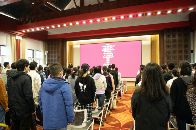 李淑静老师首先感谢校团委对外院团学工作的大力支持,并对上一学年外院团校的工作给予了充分肯定。李老师向同学们提出了三点希望:一是热爱祖国、坚定理想,她结合疫情期间外院师生、校友的辛勤工作和突出贡献,带大家体悟了“爱国是立德之源、立功之本”的深切内涵;二是指出外语学习需要不断磨练,要求同学们勤学笃实、求真力行,利用综合性资源和实践机会,积极学习有利于国家发展的知识技能;三是希望大家团结奋进、守望互助,在团校学习中广结益友,提升集体凝聚力,带动青年们奋发向上。