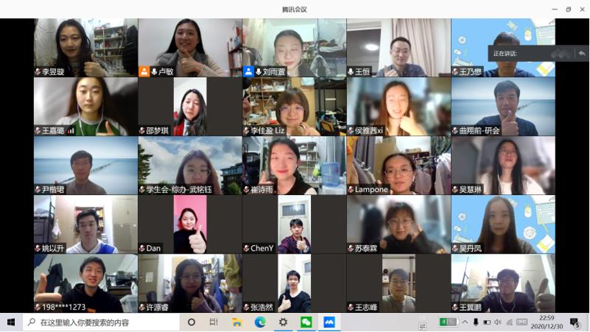 2020年12月31日晚,爱体育网页版顺利举行了2020年团学工作交流述职会。北大外院团委、学生会、研究生会、新媒体中心四个学生组织骨干成员及院党委副书记王恒,团委书记卢敏,团委副书记于丹、李佳盈共55人参加会议。此外,因北京市疫情防控需要,此次述职大会以线上会议的形式展开。本次会议由团委学生副书记刘雨萱主持。