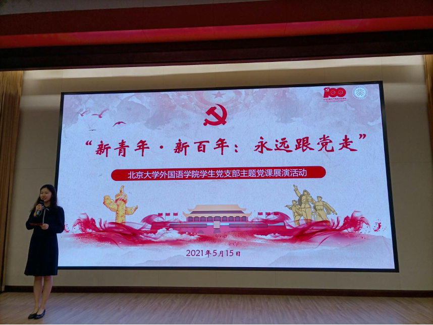 党课展演中,各支部各抒自能,通过主题讲述、视频展示等方式,展现本支部党课教育成果。朝韩语研究生党支部、日语翻译硕士研究生党支部从专业出发,展示了外语人在党史学习中的独特风采。世文所研究生党支部、英语翻译硕士研究生党支部深入思考中国共产党领导下的中国对外双边关系及多变关系的发展历程。英语研究生党支部、亚非研究生党支部以视频形式展示党史课程,生动直观地展示出同学们对党史学习的独特见解。本科生第二党支部以宣传画为切入点,选题新颖而又引人入胜。本科生第三党支部分享了革命先辈高君宇献身革命的感人故事。本科生第四党支部从我党历史上的“至暗时刻”谈起,为大家阐述了“中国共产党为什么伟大”。