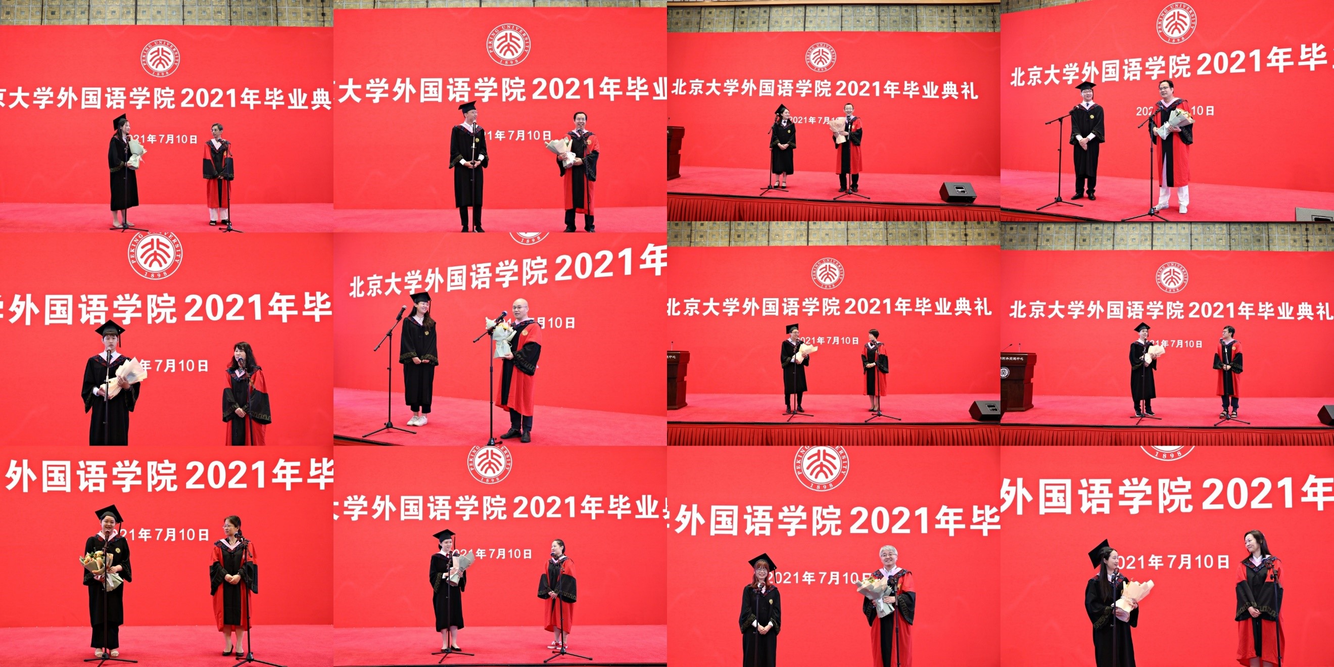 7月10日上午,爱体育网页版2021年“致敬青春,拥抱时代”主题毕业典礼在英杰交流中心阳光厅隆重举行。院长宁琦,院党委书记李淑静,副院长付志明、吴杰伟、王丹,院党委副书记宋扬出席典礼。参加典礼的还有阿拉伯语系系主任林丰民、教师代表廉超群,朝(韩)语系副系主任李婷婷、教师代表文丽华、琴知雅,德语系系主任黄燎宇、教师代表谷裕,东南亚系系主任史阳、教师代表林琼、杨国影、黄轶、咸蔓雪、万悦容,俄语系系主任陈松岩、教师代表陈思红,法语系系主任董强,南亚系系主任陈明、教师代表姜永红、张嘉妹,日语系系主任孙建军、副系主任丁莉、教师代表马小兵、王灿娟、岳远坤,西葡语系系主任范晔、教师代表郑楠,西亚系副系主任刘英军、教师代表陈飞,亚非系教师代表程莹,英语系系主任高峰枫、教师代表纳海,语言所主任高一虹、教师代表郑萱,世文所副主任程小牧,MTI教育中心主任林庆新,学院教务办公室与学生工作办公室老师。老师们与学院2021届全体毕业生,共度毕业难忘时刻。典礼由院党委副书记王恒主持。