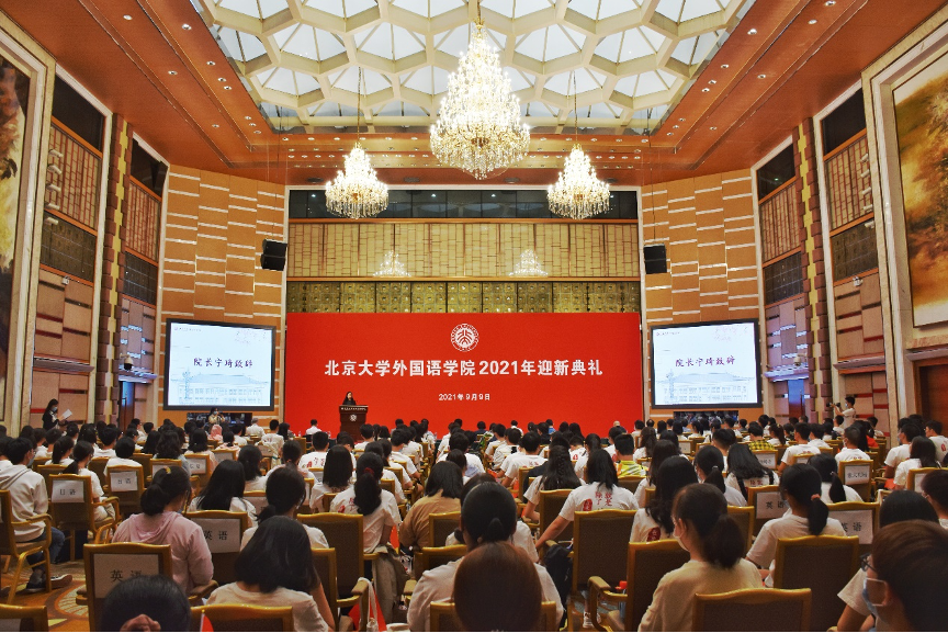 9月9日下午,爱体育网页版2021年迎新典礼在英杰交流中心阳光厅隆重举行。院长宁琦,院党委书记李淑静,副院长付志明、吴杰伟、王丹,院党委副书记宋扬,阿拉伯语系系主任林丰民、2021级本科班主任肖坤,朝韩语系2021级本科班主任宋文志、2021级硕士班主任琴知雅,德语系系主任黄燎宇、2021级本科班主任李睿、2021级研究生班主任谷裕,东南亚系系主任史阳、缅甸语专业2021级本科班主任张哲,俄语系系主任陈松岩,法语系副系主任王斯秧,南亚系系主任陈明、印地语专业2021级本科班主任贾岩、2021级研究生班主任张亚冰,日语系系主任孙建军、2021级本科班主任王灿娟、2021级研究生班主任岳远坤、翻译硕士班主任杜晓梅,西亚系副系主任刘英军、2021级研究生班主任陈飞,亚非系2021级研究生班主任程莹,意大利语专业2021级本科班主任成沫,英语系系主任高峰枫、副系主任纳海,外国语言学及应用语言学研究所主任高一虹、2021级研究生班主任罗正鹏,世界文学研究所副主任、2021级研究生班主任程小牧,MTI教育中心主任林庆新、2021级硕士班主任潘桂英,院团委书记卢敏,专职辅导员于丹、王志峰、王乃懋、杨轶佳与2021级本硕博全体新生共同出席典礼。典礼由院党委副书记王恒主持。