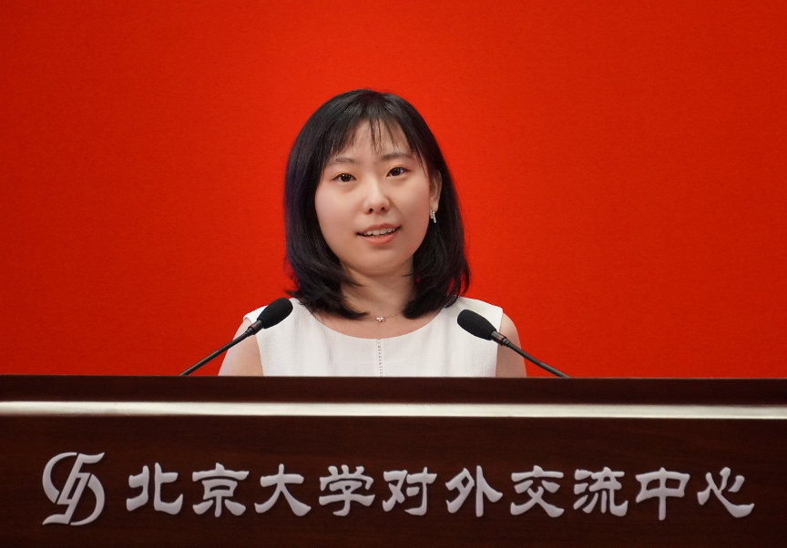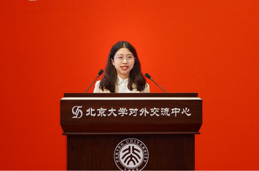 法语系2021级博士生赵婉雪在发言中提到,历史悠久、成绩斐然的北大外院,是学子们心中永远鲜活的精神家园。作为博士生,她将继续坚持自主选择的事业,全身心倾注热情,在人类文明的星空下仰望探索。她认为,以学术为业,也是力求文明进步、发挥所长的报国之路,燕园学子应当有一份传播中国声音的家国情怀。