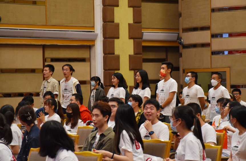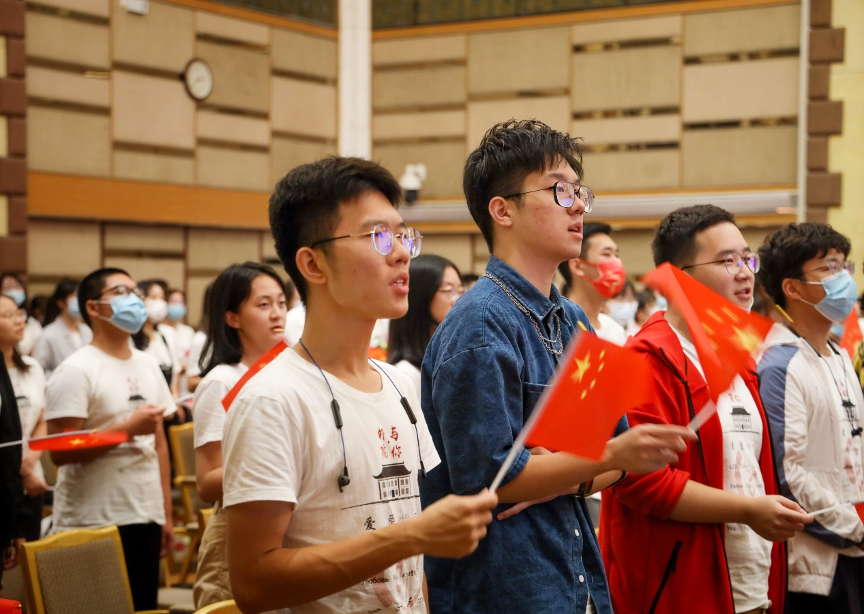 最后,全体师生齐唱《燕园情》,并挥动着手中的国旗,唱响《我和我的祖国》。迎新典礼在热烈的掌声和歌声中圆满结束。