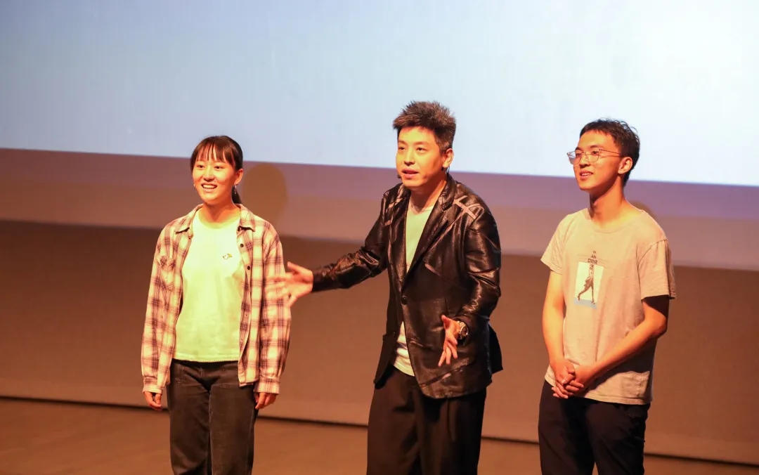 第二次的互动环节,郭震老师邀请同学们在台上进行临时设定情境的即兴表演。郭震老师对同学们在表演过程中展现出的出色想象力与创造力表示十分惊喜,并鼓励同学们未来在戏剧表演方面进行更多的探索与尝试。同学们也在舞台表演的过程中,学到了表演尺度的控制技巧,并了解了舞台灯光场地流程的细节安排。