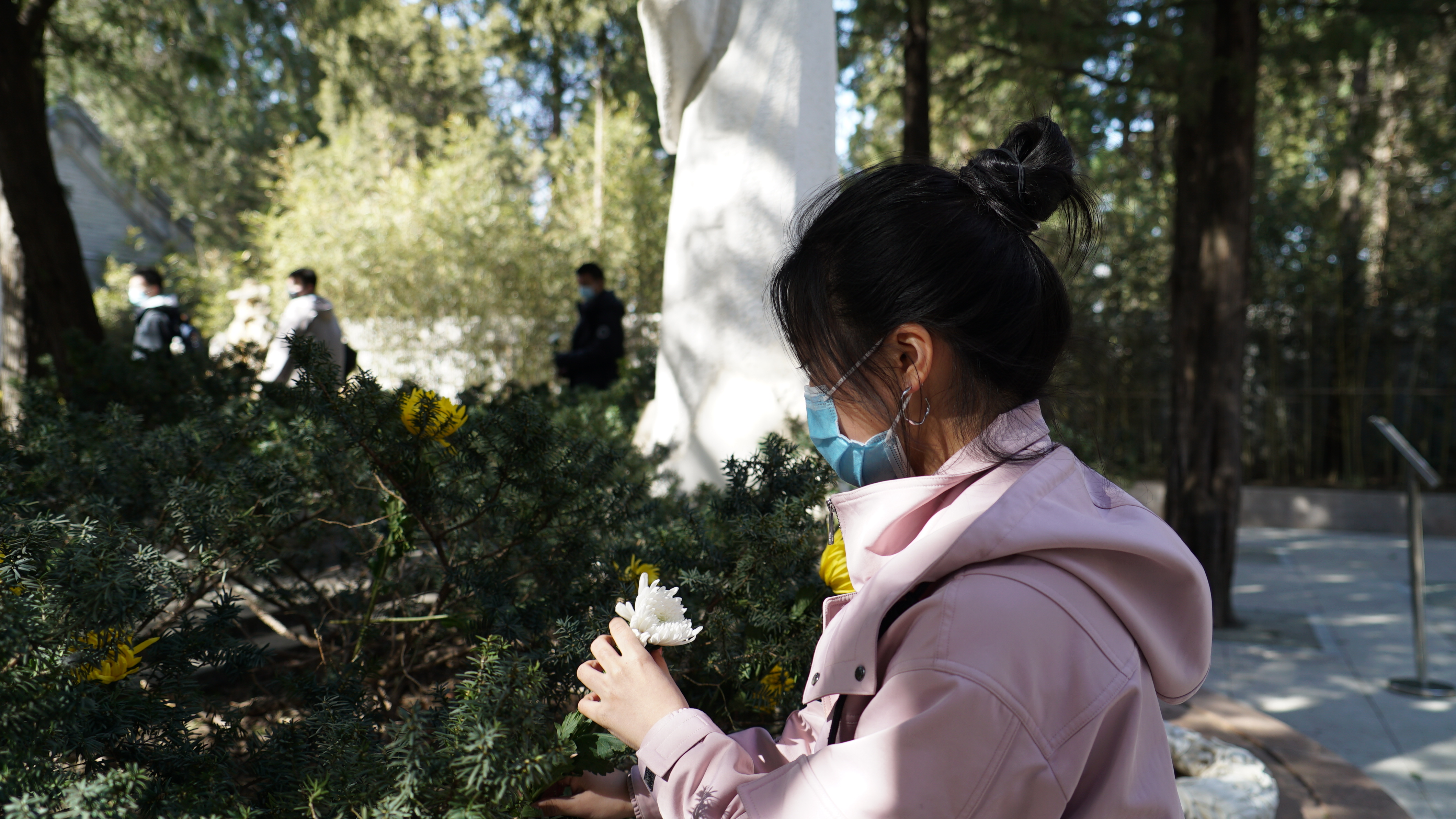 下午一时许,本次实践活动在位于万安公墓的李大钊烈士陵园正式拉开帷幕。1927年4月28日,年仅三十八岁的李大钊先生在北京英勇就义——今年是这位共产主义运动先驱、伟大的马克思主义者牺牲九十五周年。值此特殊年份,学员们在李大钊烈士陵园参观了“不朽的功勋——李大钊生平事迹展”,并分批开展纪念祭扫活动,追寻先烈足迹,深入学习李大钊烈士的崇高革命精神。
