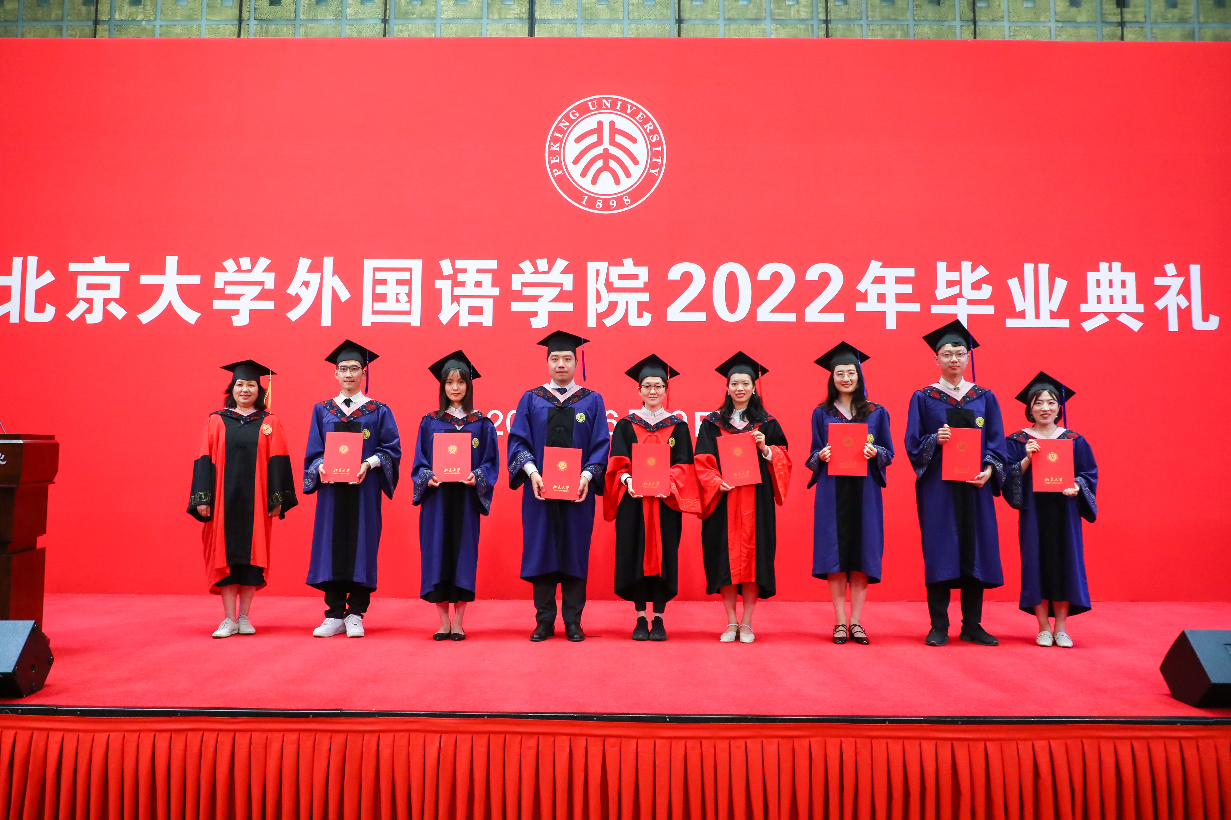 6月19日傍晚,爱体育网页版2022年研究生毕业典礼在英杰交流中心阳光厅隆重举行。院长陈明,院党委书记李淑静,副院长付志明、吴杰伟、王丹,院党委副书记宋扬出席典礼。北京大学教师教学发展中心副主任林丰民、阿拉伯语系副主任廉超群,朝(韩)语系主任李婷婷、教师代表琴知雅,德语系主任胡蔚、副主任毛明超,东南亚系主任史阳、教师代表谢侃侃,俄语系主任陈松岩,法语系主任周莽、教师代表段映虹,南亚学系教师代表张亚冰,日语系主任孙建军、教师代表岳远坤,西葡意语系主任范晔,西亚系教师代表拱玉书,亚非系教师代表程莹,英语系副主任纳海,语言所教师代表苏祺,世文所副所长程小牧,MTI教育中心主任林庆新、班主任潘桂英,国别和区域研究专业教师代表施越、张忞煜,以及学院办公室、学生工作办公室与团委老师们受邀出席。典礼由院党委副书记王恒主持。