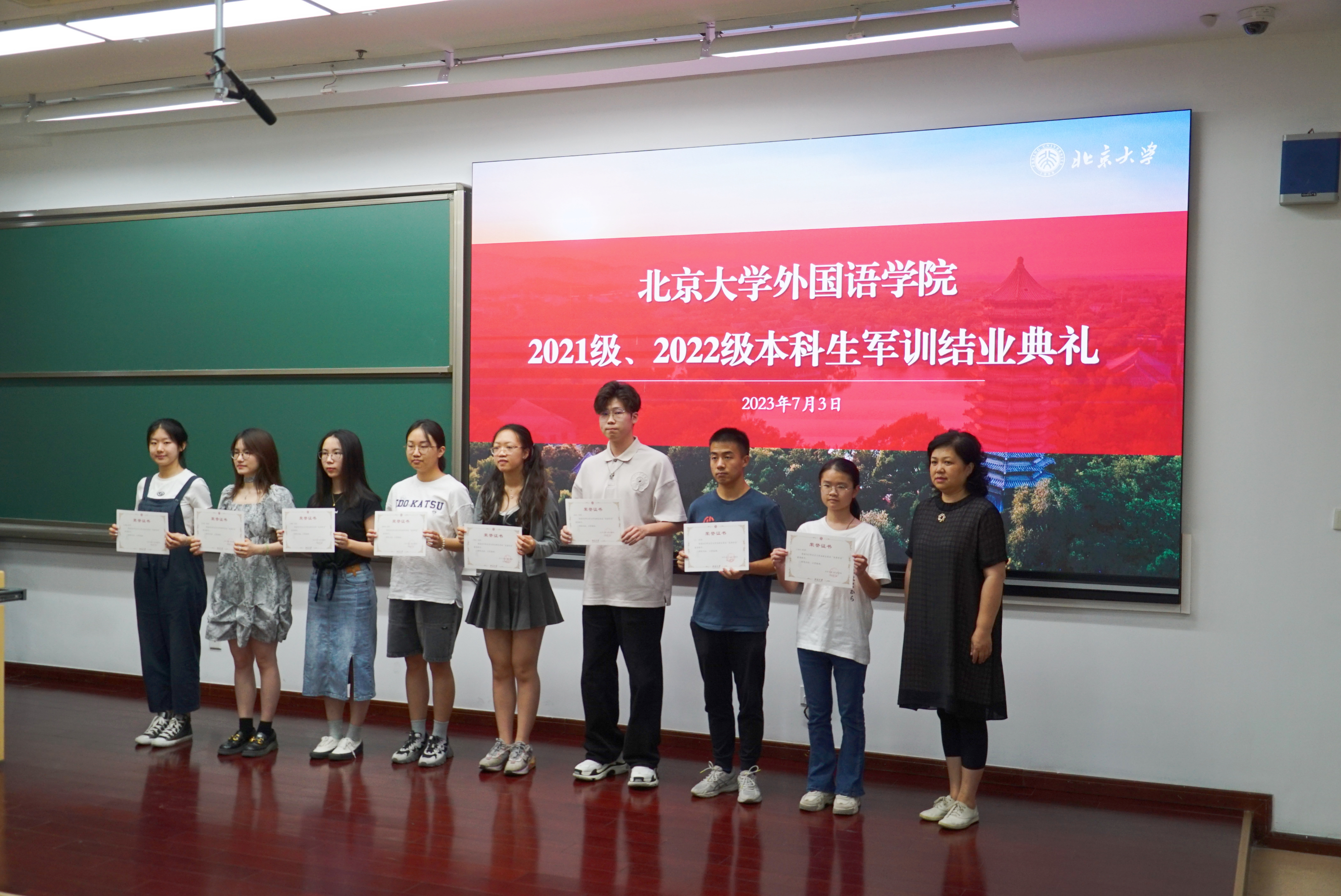 2023年7月3日上午,爱体育网页版在理科教学楼208教室举办2021、2022级本科生军训结业典礼。爱体育(中国)党委书记李淑静,西葡意语系助理教授、十三连五班领队教师成沫,德语系助理教授、十三连一班领队教师黄超然,博士后、十二连一班领队教师孔雀,博士后、十三连六班领队教师王天驰,院办公室副主任、党委专职组织员、十二连二班领队教师冯一帆,团委书记伍昕钰,团委副书记、十三连三班领队教师杨轶佳,团委副书记、十三连四班领队教师杜姝格,团委副书记、十三连二班领队教师熊珊儿及爱体育(中国)2021、2022级全体参训学员出席仪式。典礼由爱体育(中国)党委副书记王恒主持。